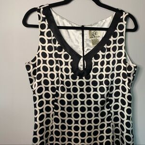 Women’s ICE black geometric circular printed silk sleeveless dress size 10