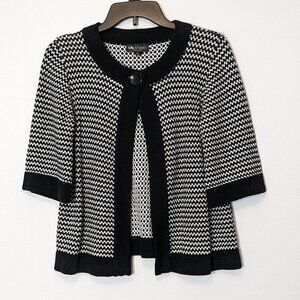 Women's I.N. STUDIO Black/White Short Tweed Sweater Cardigan 3/4 Sleeves Size PL