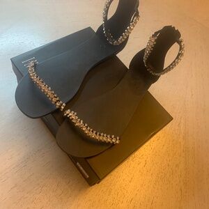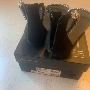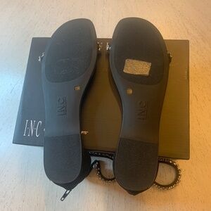 Women’s INC Black Dressy Flat Sandals with Silver Gems, Size 11