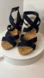 Landor Wedge Cork Style Heel Size 10M in good pre owned condition. The navy straps criss-cross wrap. Super cute for summer!
