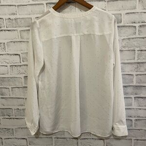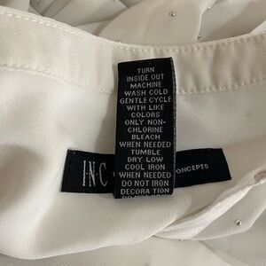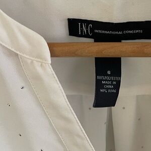 Women’s. INC. International Concepts. White sheer shirt. Tiny rhinestones. Button down. V-neck. Long sleeves. Preowned condition. No stains/tears. Size 6.