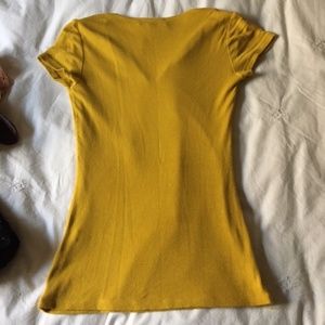 Ribbed V-neck top/tee XS. Only worn once. Last two pictures are the actual tee in a different color from Macy's site. Mustard yellow. A year-round essential, this ribbed V-neck top from INC International Concepts was made for work or play.