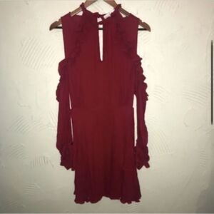 Women's IRO Dark Berry Red Long Sleeve Open Back Cocktail Dress