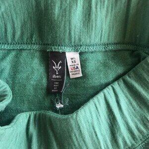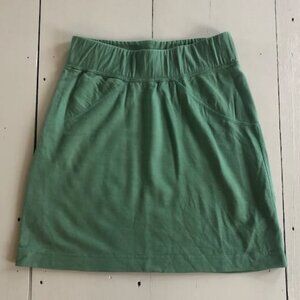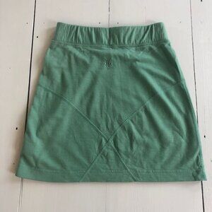 Women's Ibex 100% merino wool mini skirt in green. Size XS