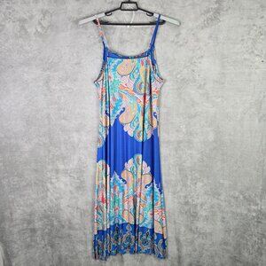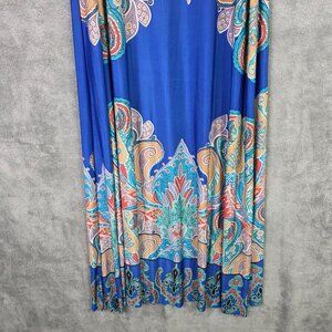 Womens Ice Silk Blue Paisley Boho Maxi Dress Sleeveless Polyester Stretch 1XL