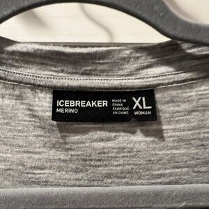 This is a grey Women's Icebreaker brand V-neck, 100% Merino XL tee-shirt.