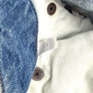 Stylish blue denim jeans with a classic design. Features a distressed detail on the front.