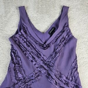 Women's Ideology Purple Silk Sleeveless Top Ruffle Detail V Neck Asymmetrical L