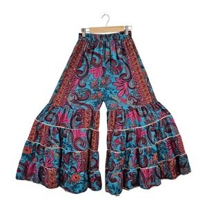 Womens Indian Silk Maxi Boho Harem Pants Tiered Wide Leg Crochet Ruffled