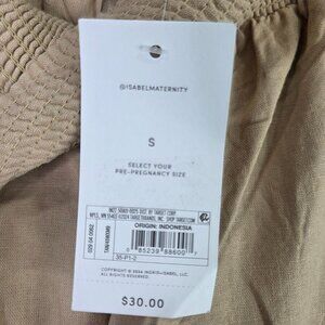 Womens Ingrid & Isabel Maternity Smocked Waist Tan Linen Blend Pants Size S