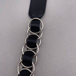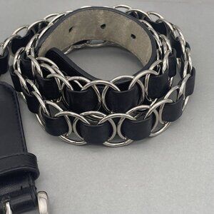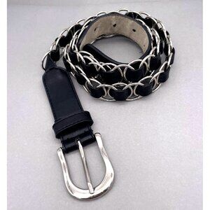 Women's Interlocking Black Leather Belt Adjustable Buckle Closure 52 Inches