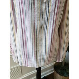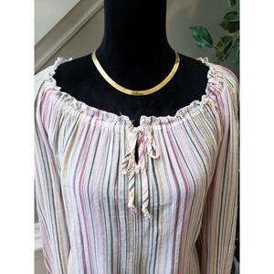 This Women's International Concepts off-shoulder top in size XL features colorful stripes in shades of pink, yellow, and purple, adding a lively touch to your wardrobe. The elasticized neckline allows it to be worn comfortably off the shoulders, and the loose fit ensures breathability and ease of movement. Perfect for warmer weather, this top pairs effortlessly with jeans or skirts for a casual, relaxed look. Made from a cotton-rayon blend for a soft feel, it's both stylish and comfortable.
