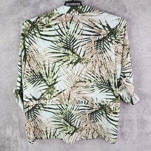 Womens Investments Tropical Leaf Print Blouse Shirt Button Up Roll Tab Sleeve XL
