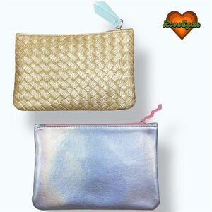 Women's Ipsy Gold Woven & Holographic Silver Mini Clutch Bundle – 2 Piece Set