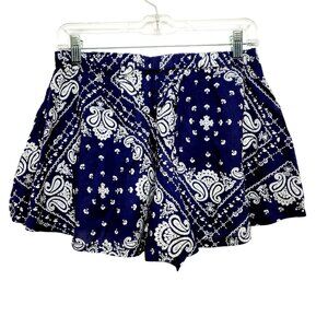 Womens Iris Basic Bandana Print Flowy Shorts With Pockets Size Large Navy & Whit