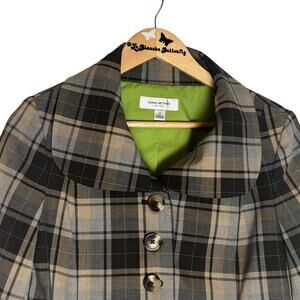 Isaac Mizrahi Brown Plaid Peter Pan Collar Cropped Blazer – Size 12
