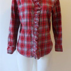 Womens Isabel Etoile Marant Red Black Ruffled Plaid Button-Up Shirt 42 US/10 *