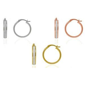 These sterling silver hoop earrings feature an optional yellow or rose gold plating