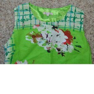 Womens Italian Summer Dress Sweet Miss Large Green Plaid Floral Scoopneck