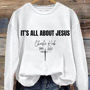 Women's It's All About Jesus R.I.P Charlie Kirk Sweatshirt shirt grey
