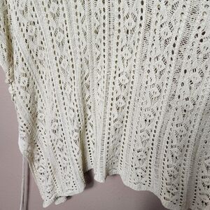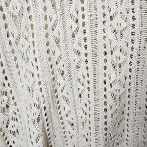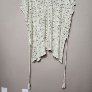 Womens Ivory Crochet Side Tie Open Knit Boho Cover Up |M|