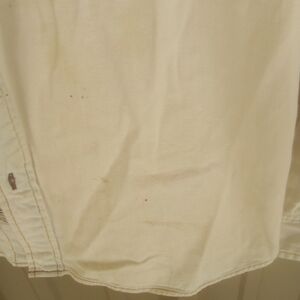 Women's Ivory Diesel Trucker Utility Jacket Barn Coat with Neon Yellow Reflective Tape in poor condition.