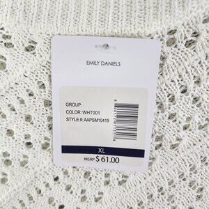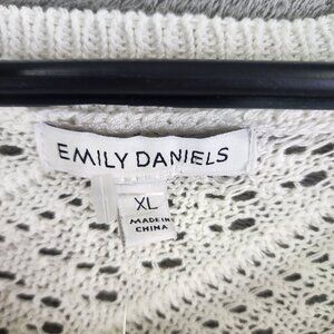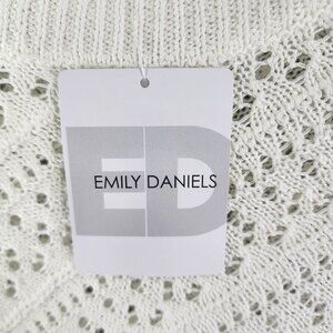 This Emily Daniels ivory open-knit sweater offers a comfortable and stylish look. Its breathable acrylic fabric and relaxed fit make it ideal for cooler weather.