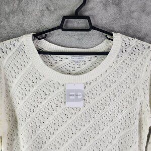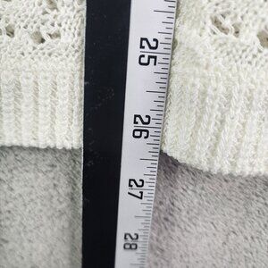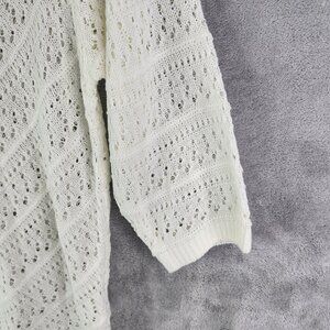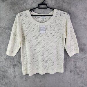 Womens Ivory White Emily Daniels Open-Knit Sweater 3/4 Sleeve Round Neck Size XL