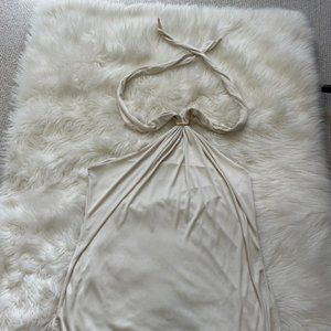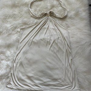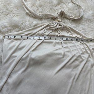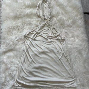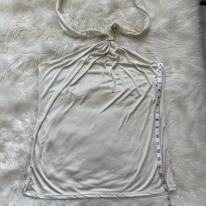 Women's Ivory/Off White/Cream Tie neck Draped fabric Halter Top