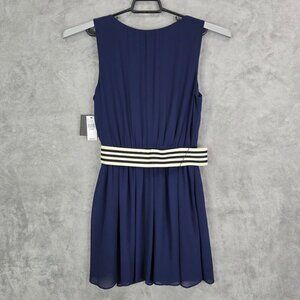 Womens Iz Byer Navy Sleeveless Dress Lined Striped Belt 100% Polyester Size L