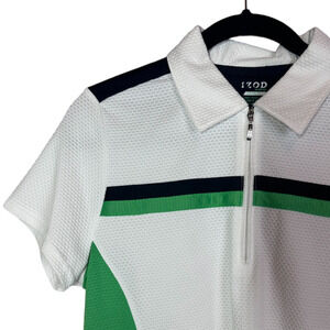 Women's Izod Cool FXG Short Sleeve 1/4 Zip Top White Black Green Y2K Style Sz M