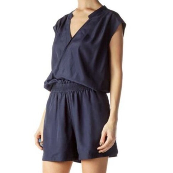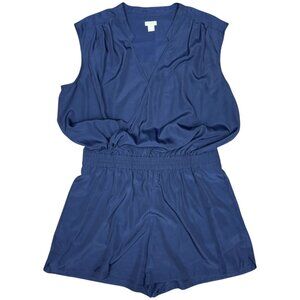 Women's J. CREW Wrap-front Romper Navy Blue Shorts- Size 14