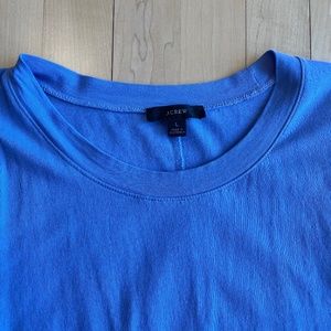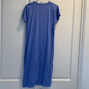 J Crew 100% cotton comfortable and cool and casual shirt sleeve tee-shirt dress. Summery dusty blue color, with crew neck and side slits at bottom. Washed once but never worn. Size L.