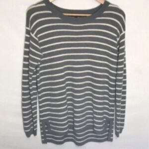 Women’s J. Crew Grey Striped Merino Wool Sweater Elbow Patches