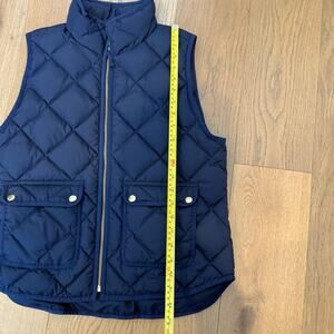 Women’s J. Crew Navy Quilted Down Puffer Vest Gold Accents Pockets PL Petite L