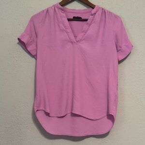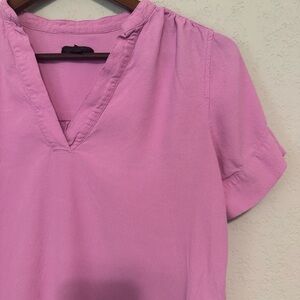 Size XS Extra Small Pink Purple This J. Crew blouse in a soft pink hue features a relaxed fit and a comfortable design. The blouse is crafted with a V-neckline and has a gentle drape, making it perfect for casual outings or a day at the office.