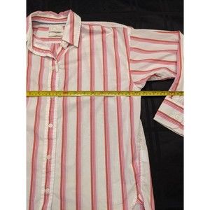 Add a pop of color to your wardrobe with this beautiful pink striped button-down shirt from J. Crew. Made with cotton canvas fabric, this shirt is both lightweight and breathable, making it perfect for any season. The relaxed fit and long sleeves give it a classic preppy look, while the point collar and button closure make it easy to dress up or down for any occasion.