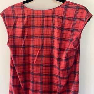 J Crew Shirt Size 0 Excellent condition Sleeveless Great color, pattern Soft red and navy blue checks Loose fitting