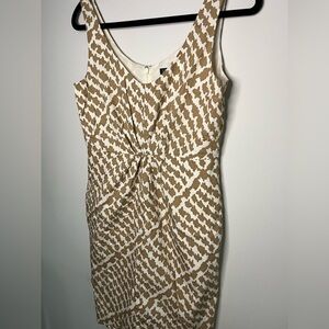 Step out in style with this elegant tan patterned dress. Perfect for any occasion, this dress combines comfort and fashion effortlessly.