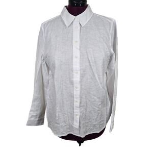 Women's J. Crew White Linen Blend Button Up Dress Shirt | Size Large