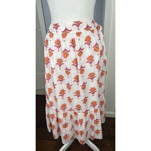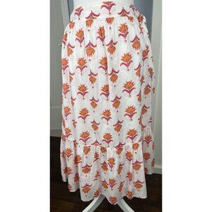 Women's J. Crew White Pink & Orange Floral Midi Skirt | Size 12
