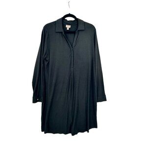 Women's J. Jill Button Front Knit Dress Button Cuffs Size Large Black Lagenlook