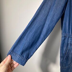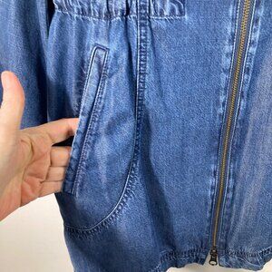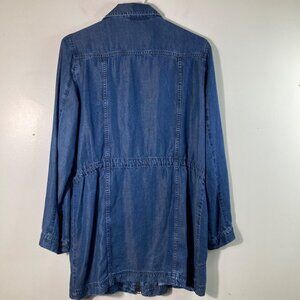 Womens J Jill Denim Chambray Zip Jacket Mid Length Blue S Tencel