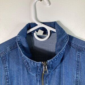 J Jill Denim Chambray Zip Jacket Mid length Blue