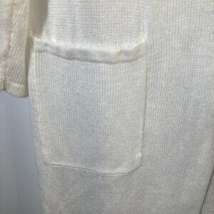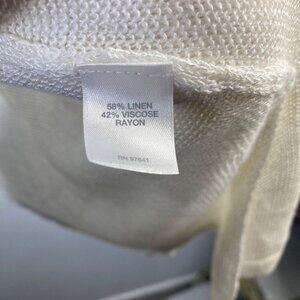 Womens J Jill Linen Blend Open Knit Cardigan 3/4 Sleeve Pockets L White