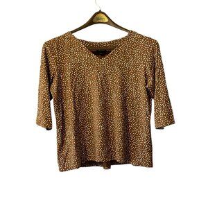 Womens J Jill Wearever Collection Polka Dot Top 3/4 Sleeve Brown Size Medium P