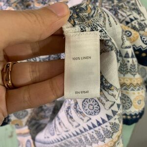 Women’s J. Jill blue and white sleeveless blouse with elephant pattern, 100% linen, size M petite see measurements, preloved good condition