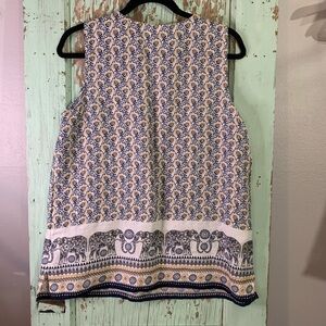 Women’s J. Jill blue and white sleeveless blouse with elephant pattern