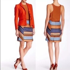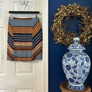Women’s J. McLaughlin Montecito Rayon Blend Orange and Blue Striped Pencil Skirt