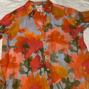 Women’s J by Joie 100% Linen Long Sleeve Watercolor Floral Button Up Blouse Size L. Chest measurement is 23” and length is 31” blouse has delicate pearly buttons.
